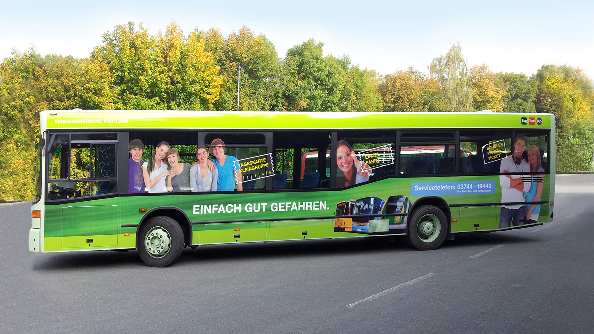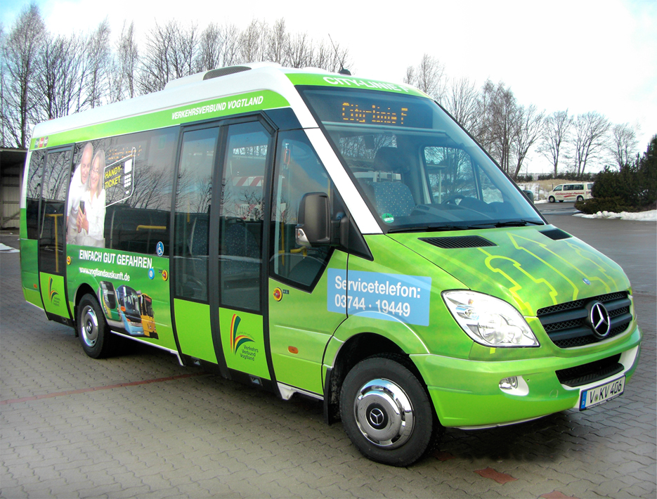 Mehrere Busse wurden von uns in den grün-gelben Farben des Verkehrsverbundes foliert.